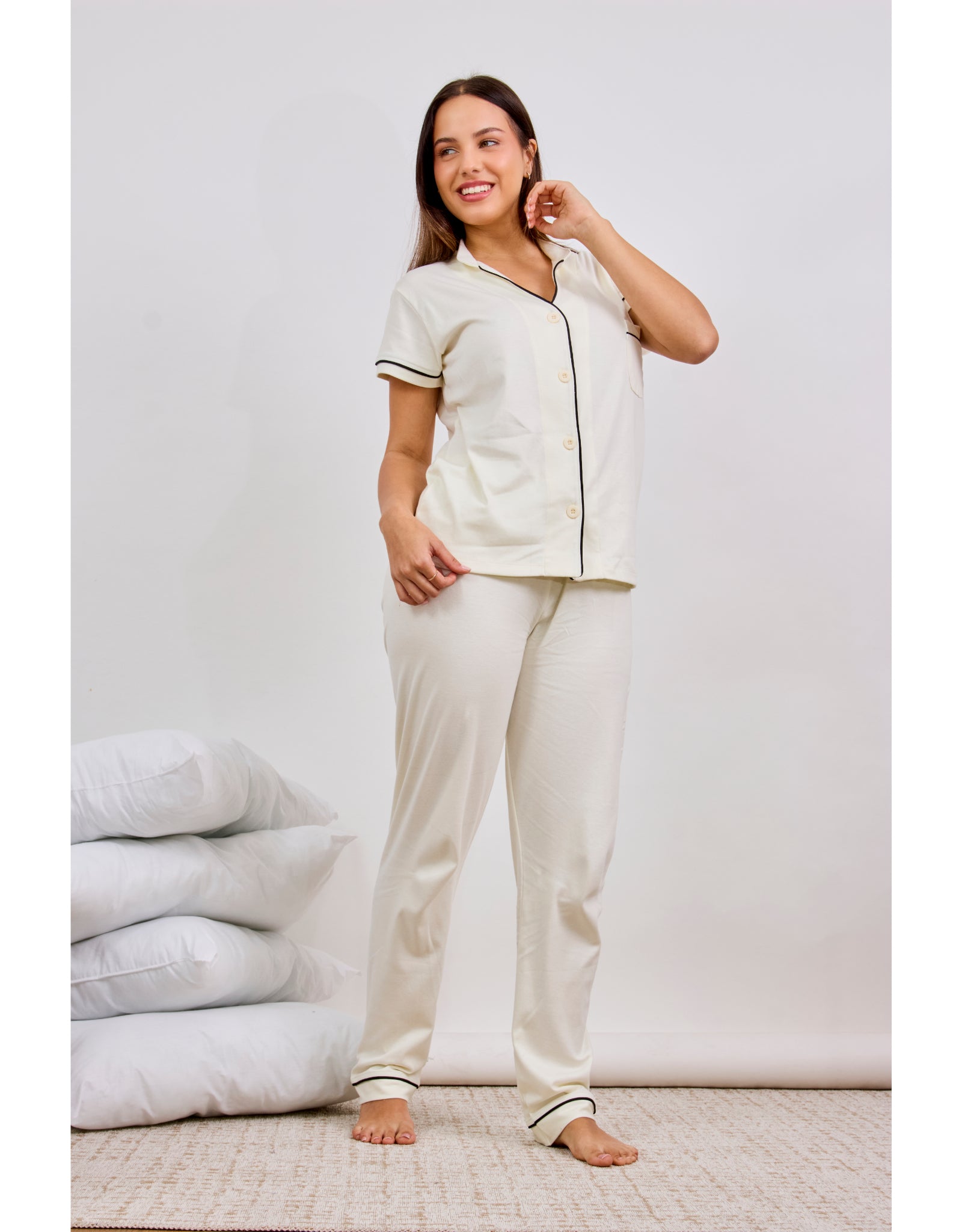 Discover the perfect balance of comfort and style with our Catalina Pajamas from Suave Luna . Made from 100% Pima cotton , renowned for its superior softness and durability, this garment envelops your skin in a light, breathable touch, perfect for any season.