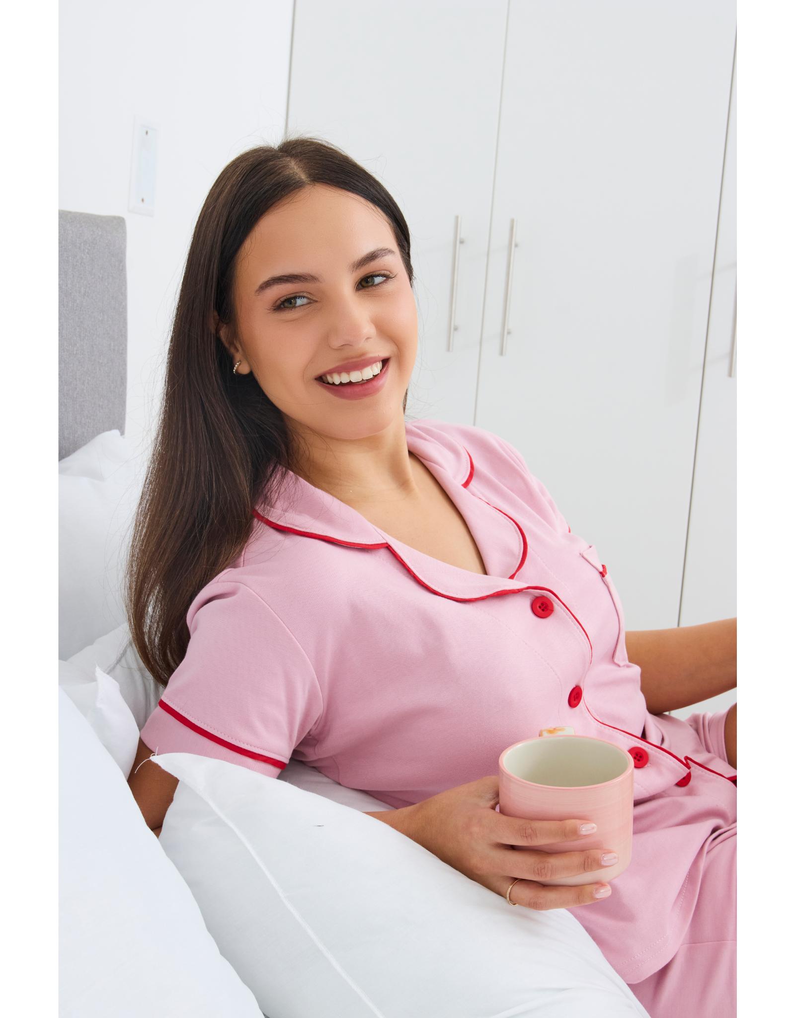 Nuestra pijama de camisa y short combina el encanto del diseño clásico con la suavidad del algodón para ofrecerte el descanso que mereces.